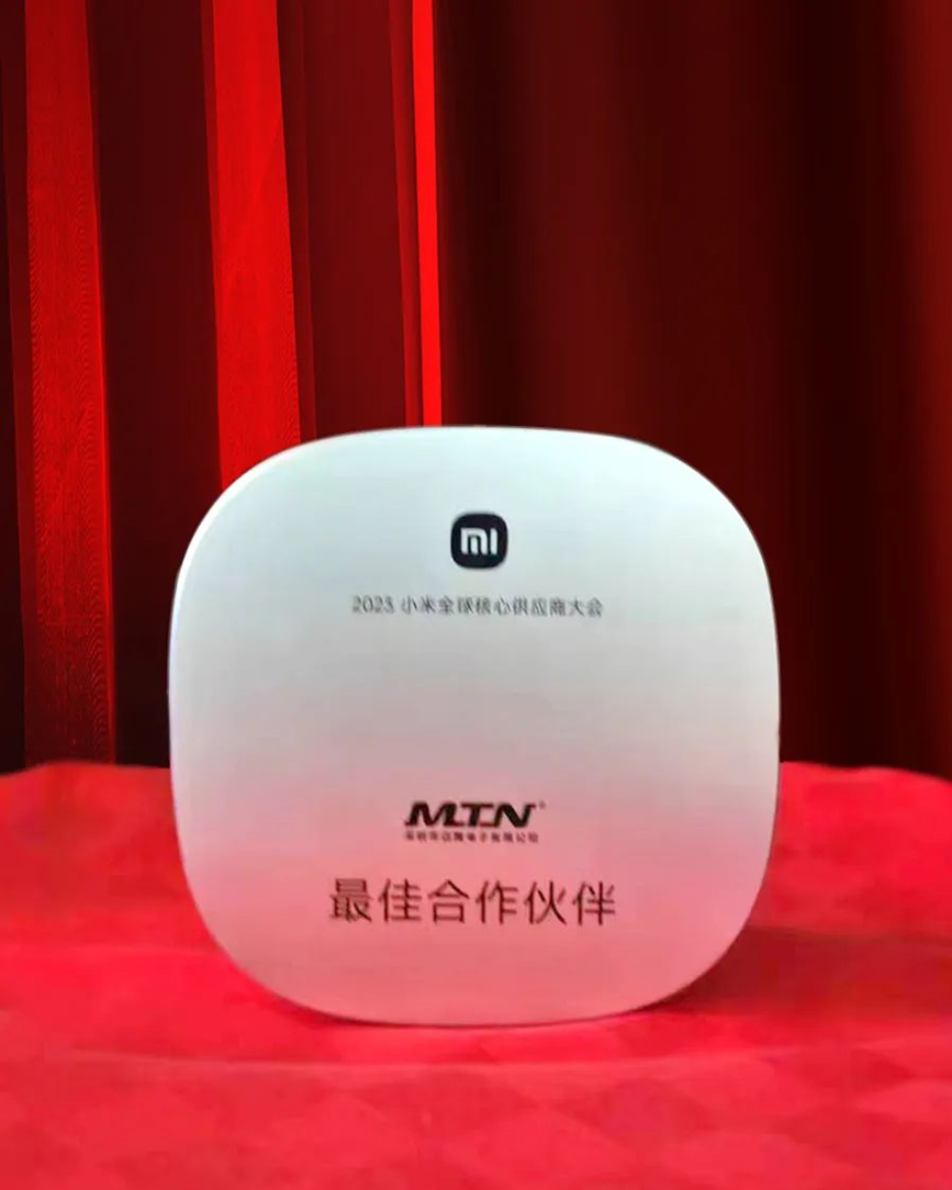 MTN won the "Best Partner" award at the 2023 Xiaomi Global Core Supplier Conference, standing out from hundreds of core suppliers around the world with its excellent performance in R&D capability, standardized procurement, flexible delivery matching and stable quality accumulated in the field of netcom.