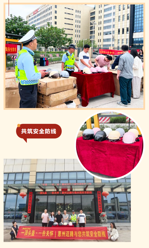 In order to effectively ensure the employees' travel safety and build a solid traffic safety defense line, MTN Huizhou factory recently joined hands with Chenjiang Sub-district Office and Zhongkai Traffic Police Brigade to jointly carry out the "One Helmet, One Care | MTN Huizhou factory Build a Safe Defense Line with You" traffic safety public welfare activity to protect the safety of employees' lives with practical actions.